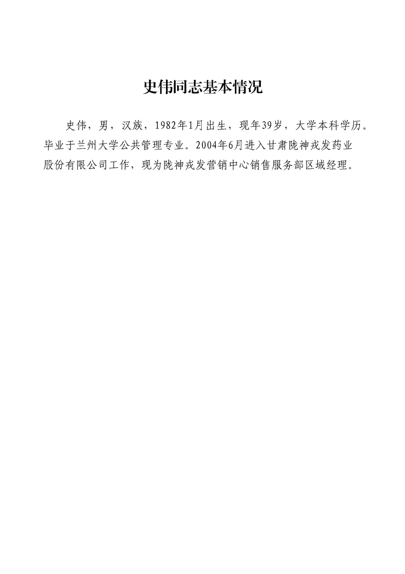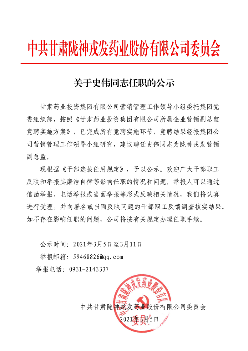 关于史伟同志任职的公示