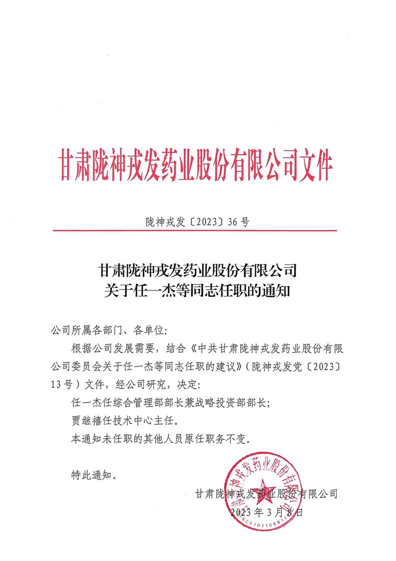 关于任一杰等同志任职的通知