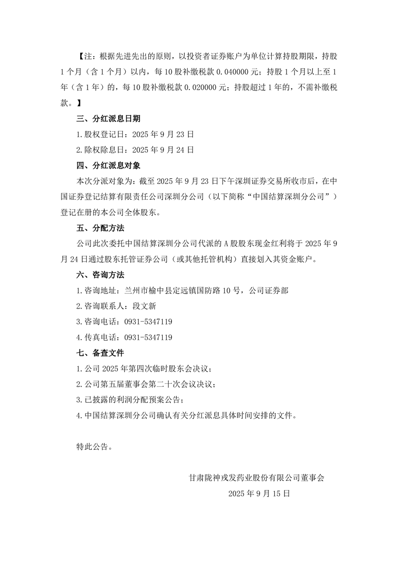 2025年半年度分红派息实施公告
