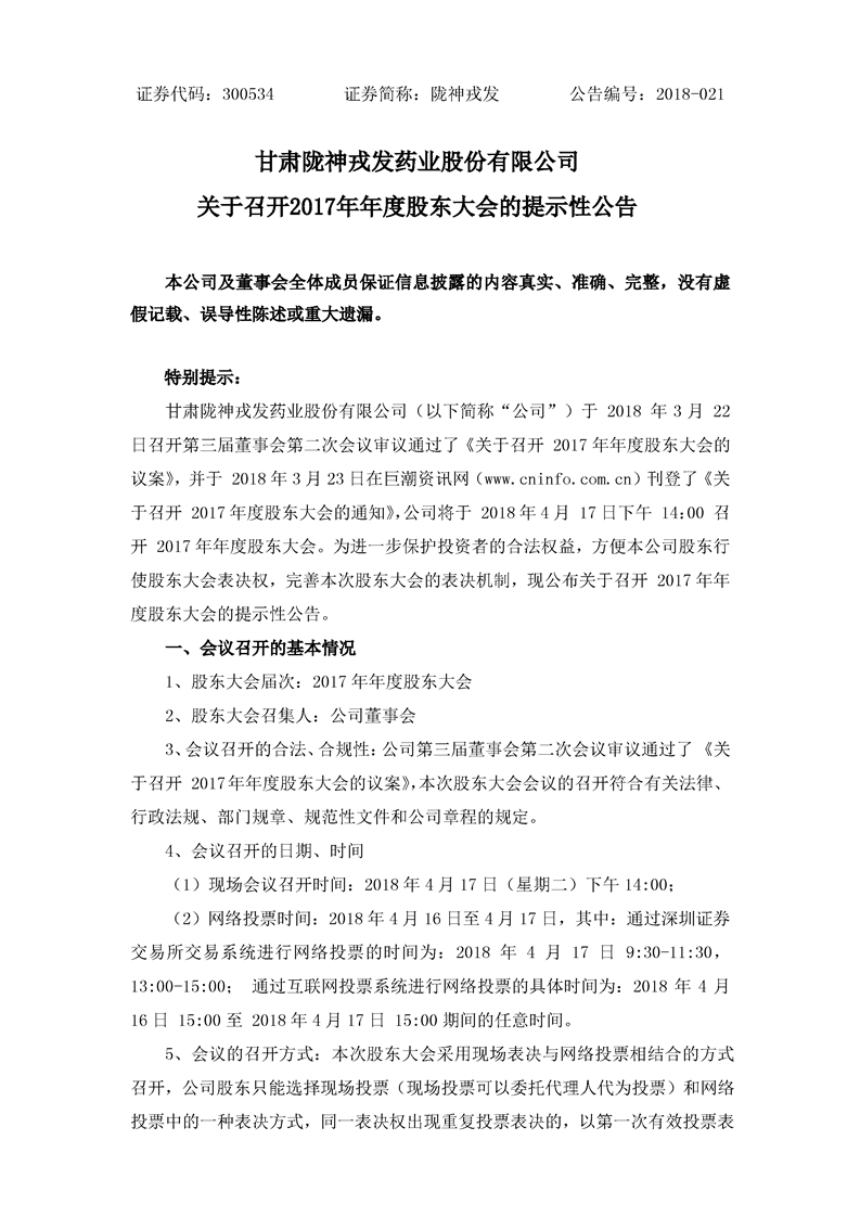 关于召开2017年年度股东大会的提示性公告