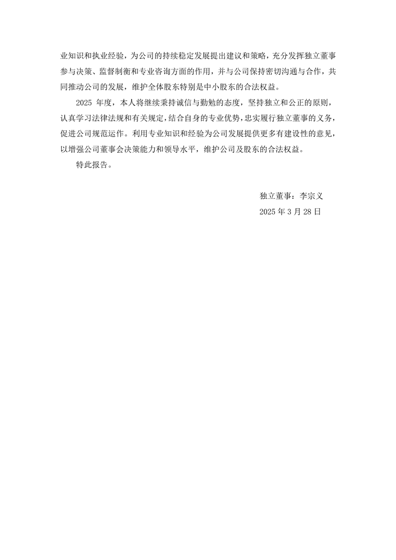 独立董事2024年度述职报告(李宗义)