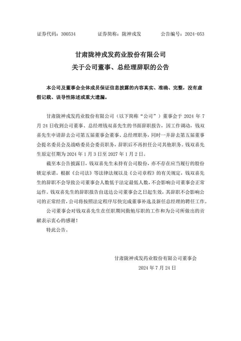 关于公司董事、总经理辞职的公告