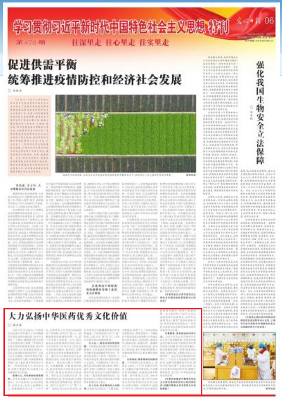 ä¹ è¿å¹³æ»ä¹¦è®°æåºï¼âä¸å»è¯å¦å å«çä¸åæ°æå åå¹´çå¥åº·å »çç念åå ¶å®è·µç»éªï¼æ¯ä¸åææçä¸ä¸ªç°å®ï¼åèçä¸å½äººæ°åä¸åæ°æçåå¤§æºæ §ãâä¸å»è¯æåæ¯ä¸å»è¯çæ ¹åºåçµéï¼æ¯ä¸åä¼ç§ä¼ ç»æåçéè¦ç»æé¨åã卿廿°å èºçç«æ è¿ç¨ä¸ï¼ä¹ è¿å¹³æ»ä¹¦è®°å¼ºè°ï¼âåæä¸è¥¿å»å¹¶éï¼ç»ç»ä¼å¿å»çåéï¼å¨é使æçåç 亡ç䏿¿åºæ´å¤æææ²»çæ¹æ¡âãä¸å»è¯æ·±åº¦ä»å ¥è¯çå ¨è¿ç¨ï¼åæ¥äºéè¦ä½ç¨ï¼ä¹ä½ç°äºèªèº«éè¦çæåä»·å¼ã