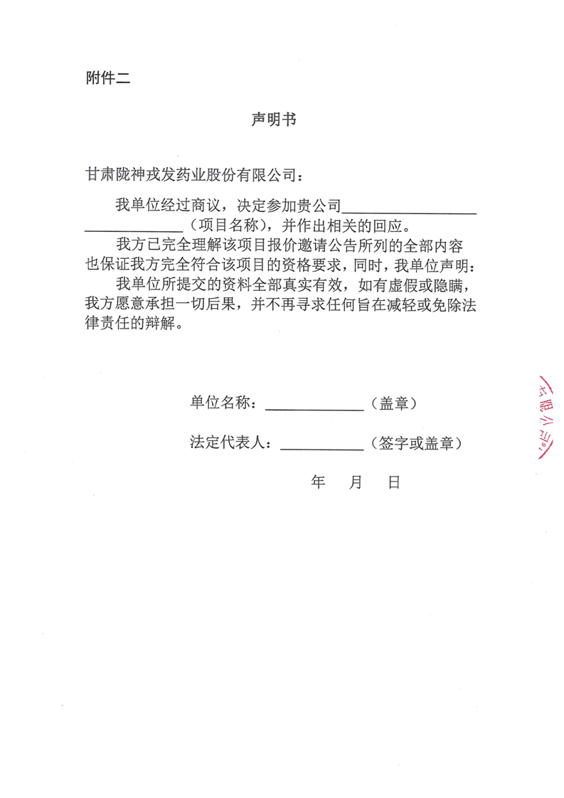 甘肃陇神戎发药业股份有限公司2025年计量器具委托校准技术服务询价公告