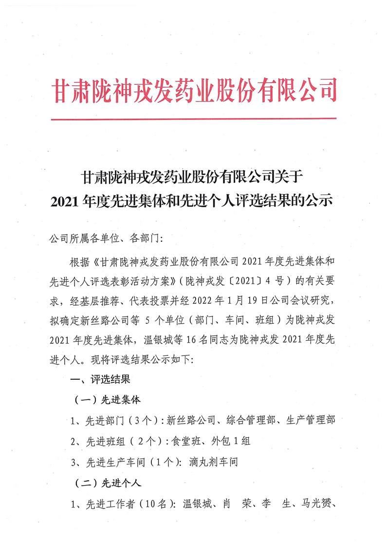 2021年度先进集体和先进个人评选结果的公示
