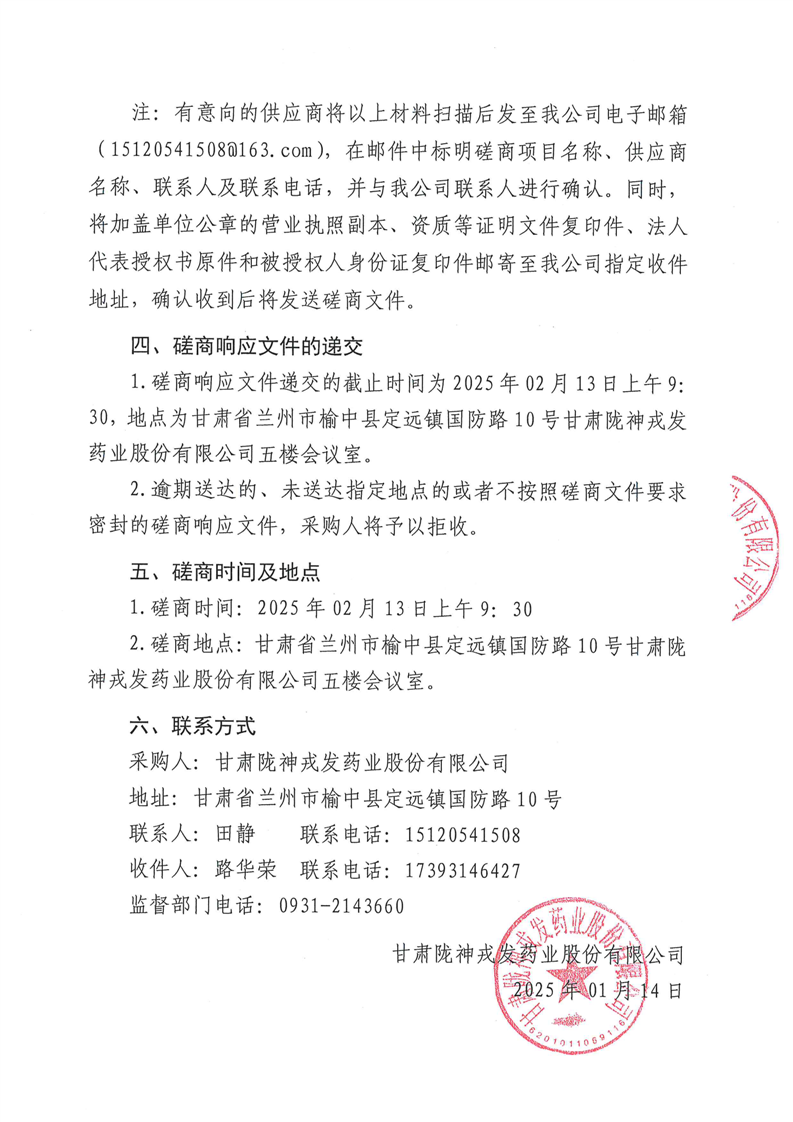 甘肃陇神戎发药业股份有限公司专利申请服务机构采购项目竞争性磋商公告