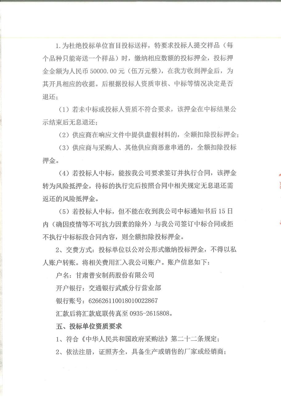 甘肃普安制药股份有限公司 2023 年-2024年3000 万盒宣肺止嗽合剂原料薄荷、鱼腥草采购竞争性磋商公告