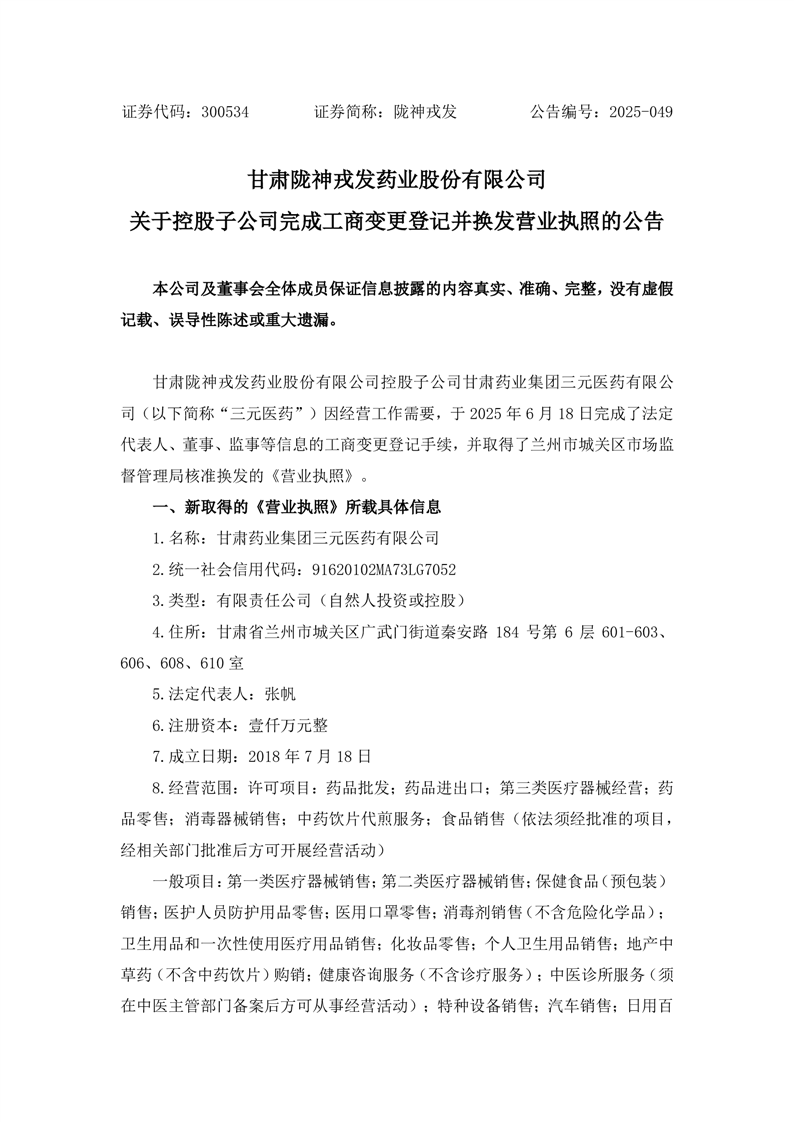 甘肃陇神戎发药业股份有限公司的网站标识