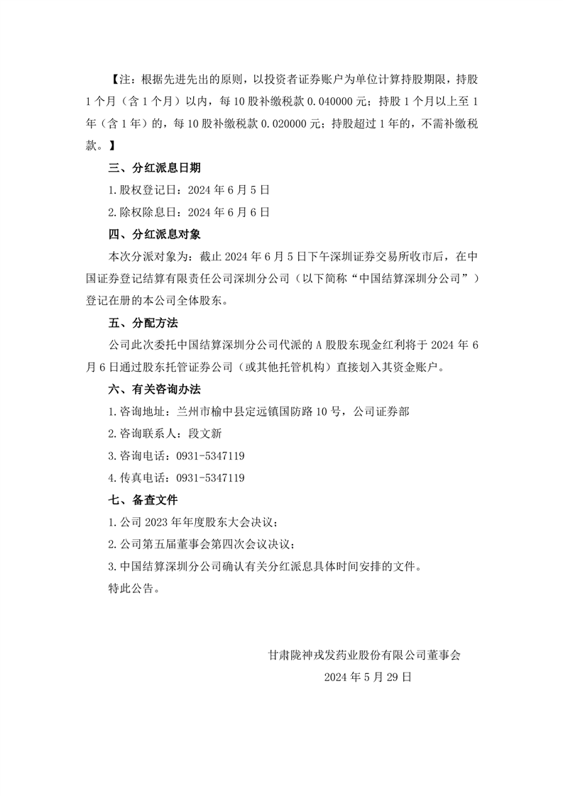 2023年度分红派息实施公告