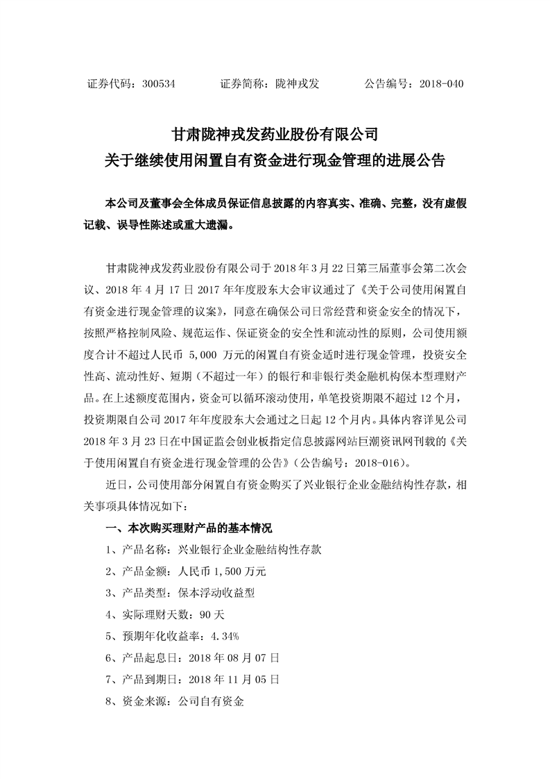 关于继续使用闲置自有资金进行现金管理的进展公告