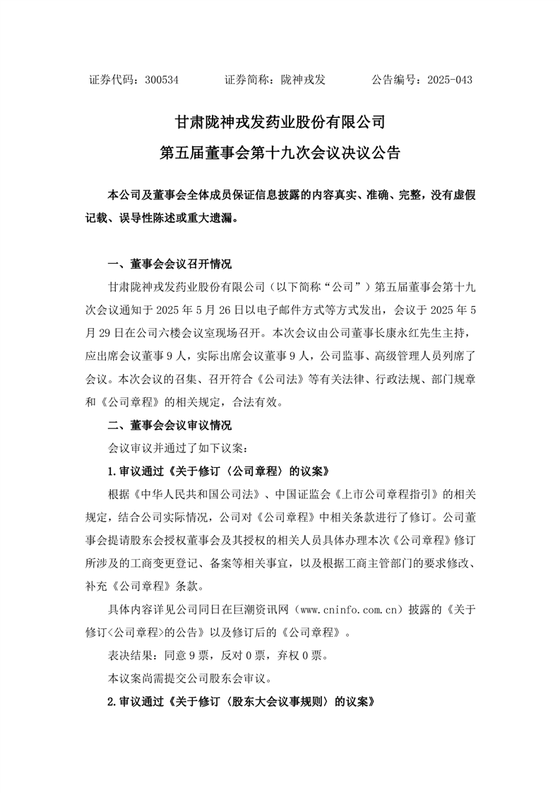 第五届董事会第十九次会议决议公告