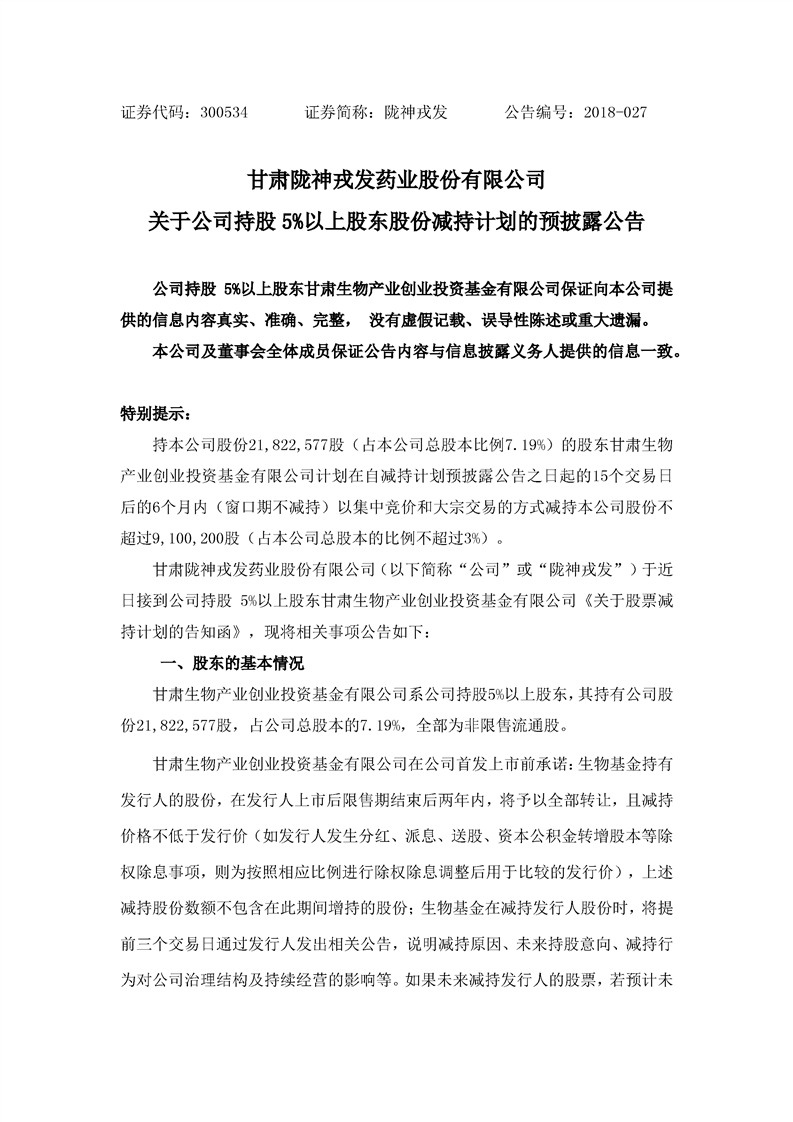 关于公司持股 5%以上股东股份减持计划的预披露公告