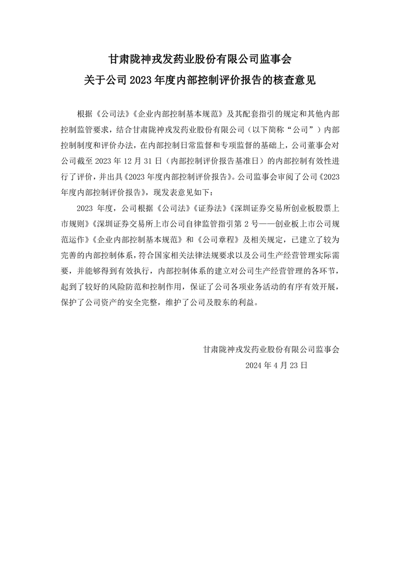 监事会关于公司2023年度内部控制评价报告的核查意见