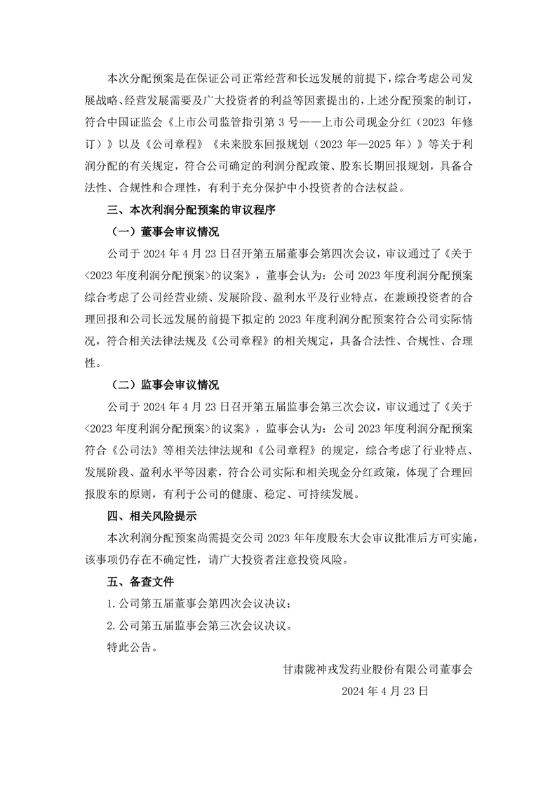 关于2023年度利润分配预案的公告