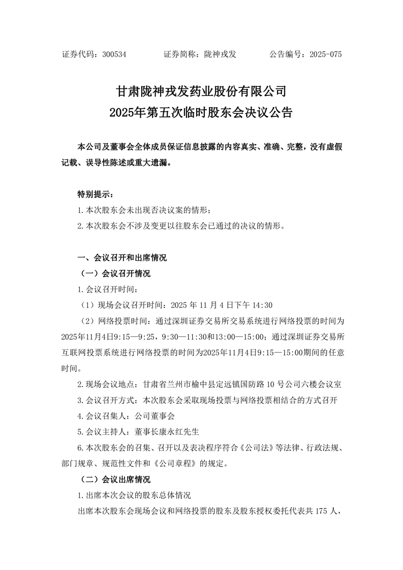 2025年第五次临时股东会决议公告