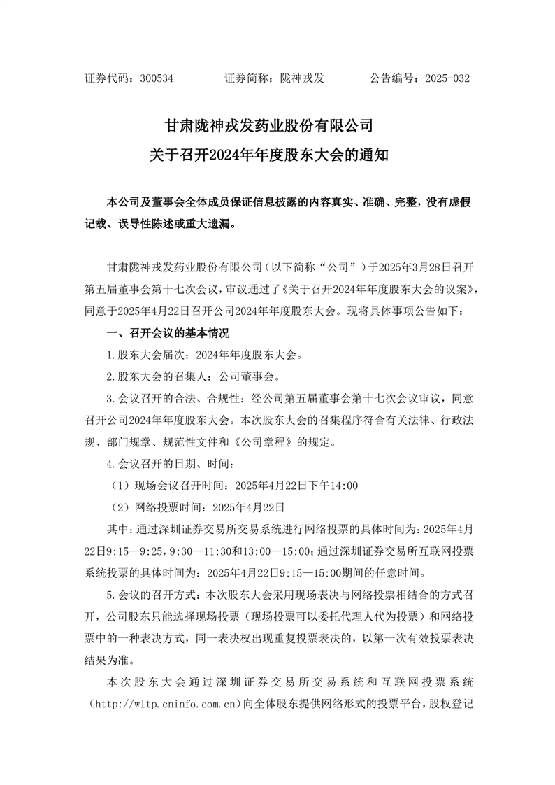 关于召开2024年年度股东大会的通知