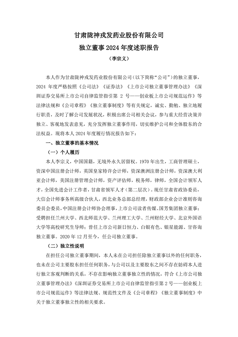 独立董事2024年度述职报告(李宗义)