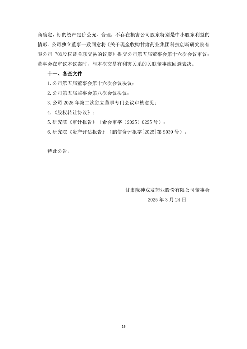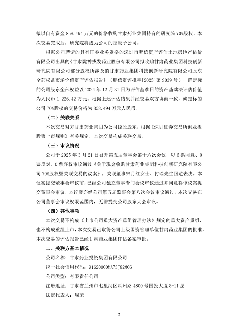 关于现金收购甘肃药业集团科技创新研究院有限公司70%股权暨关联交易的公告